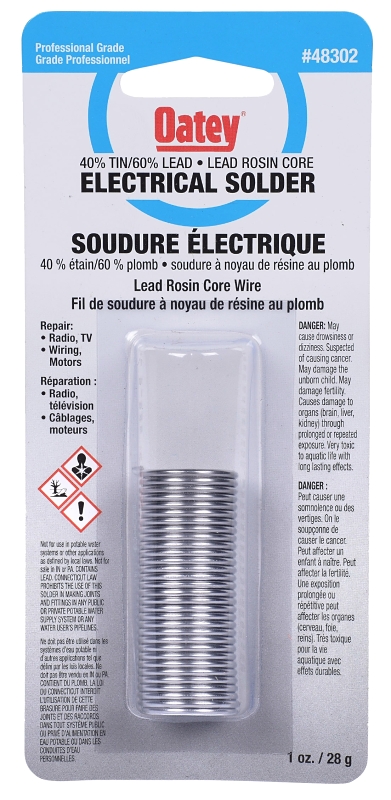 Oatey Rosin Core Wire Solder, Net Content: 28 g, Carded, Solid, Silver Gray, Compositions: Tin, Lead, Melting Point: 182.22 to 237.78 deg C, Relative Density: 9 to 11